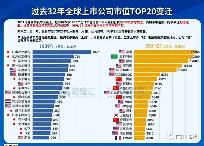 而到了今年Q1,全球TOP20公司,日本已经一个公司都看不到了。可以说,这是日本在新经济的惨败,也是当年被美国打压和人口萎缩的后遗症。