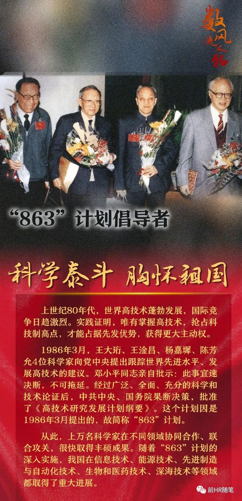 1986年3月,中央启动实施了国家高技术研究发展计划(“863”计划),助推我国高技术研究进入了一个新的发展阶段;让中国发展道路上有一个强有力的助推器。这背后的主要倡导者,是王大珩、王淦昌、杨嘉墀、陈芳允4位科学家。随着“863”计划的深入实施,我国在信息技术、能源技术、先进制造与自动化技术、生物和医药技术、深海技术等领域都取得了重大进展。
