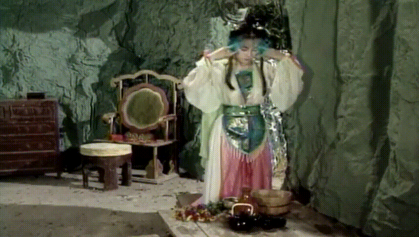也就是在这一段中,我们看到剧中采因唯一的一次施法——她把桂花变成了酒,为了讨好守门的小妖,放她去和媚娘见上一面。