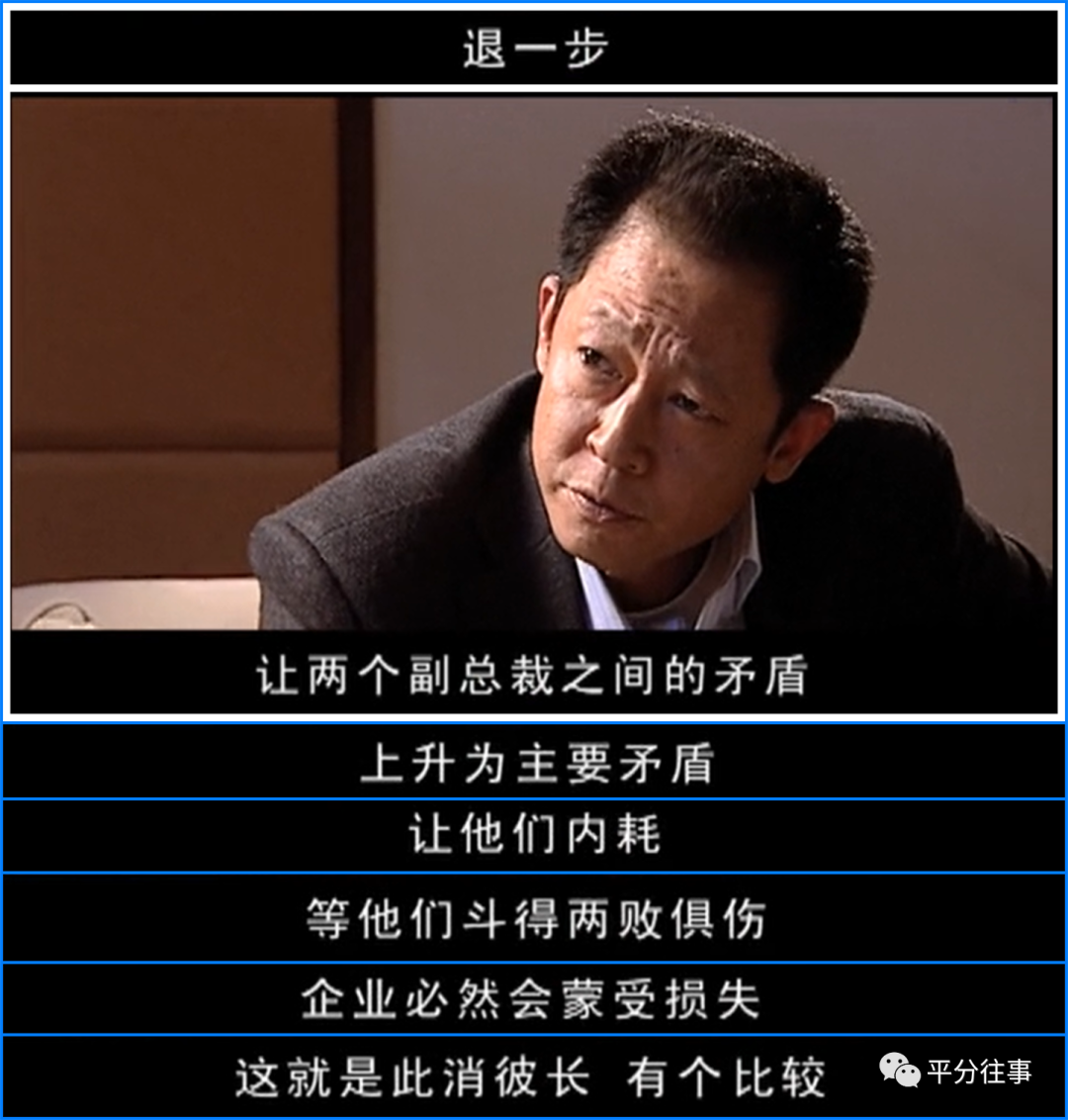 如果激战之时,韩楚风做出退避的姿态,将舞台留给另外两位,那么这两位副总裁之间的矛盾势必上升为主要矛盾。基于“文化属性”的必然,两人会争个你死我活。而这种内耗,会损害集团的利益。