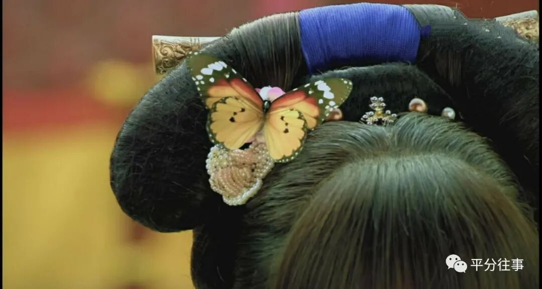 而发髻上的秋海棠,引了一只蝴蝶停留。