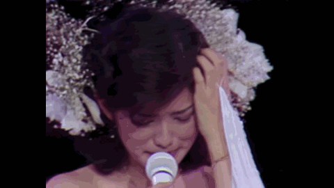 演唱会的最后,换上白色婚纱的山口百惠在台上唱出的最后一句歌词是,“用歌声代替说再见”,之后忍不住痛哭。