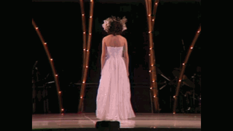 她看了看话筒,像是在与它最后做一次告别。之后,独自转身走向舞台的深处。