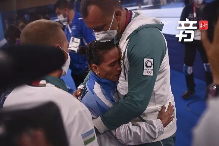 东京奥运会的赛场上,丘索维金娜宣布退役。下场后,她再也无法抑制自己的情绪,躲进教练怀中,放声大哭……