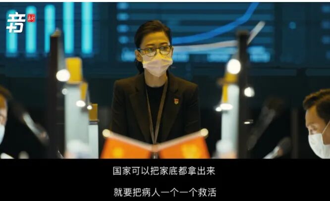 此时,面对有些失控的场面,袁泉饰演的重症医学科主任文婷果断站到高处,拿着扩音器喊道:“你们都想活,我们都想救。”