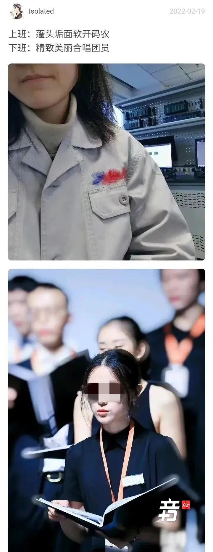 上班时是蓬头垢面、平平无奇的程序员码农,下班后则画上精致的妆容,在合唱团放声高歌。