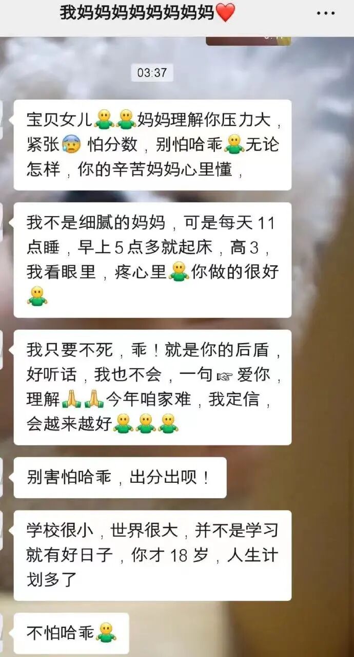 高考失利,让人耿耿于怀,也让人充满遗憾。 这个心结一旦解不开,影响的不只是大学四年,更是以后的人生。 所以,高考失利不仅是孩子人生的转折点,更是父母教育的关键点。 这时候,做父母的应该首先注意,别太在意一时的成绩。 应该告诉孩子,不管考得好不好,父母永远都爱你,永远在你身后,是你最可靠的依靠。 就像一位妈妈给自己高考失利的孩子半夜发来的微信: “学校很小,世界很大,并不是学习就有好日子,你才18岁,人生计划多了。”