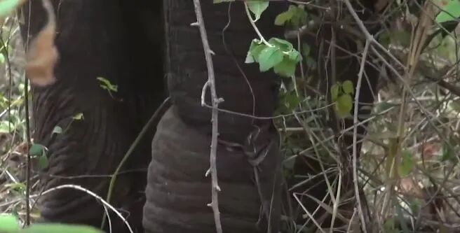 这时其中一名队员又发现了大象的异常,它的鼻子那个部位,可以毫不夸张地说即将快要断掉。