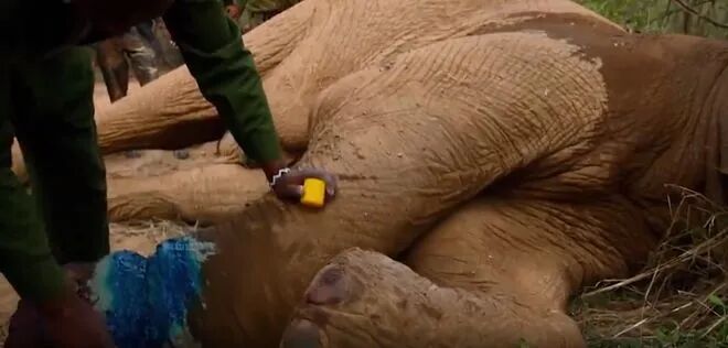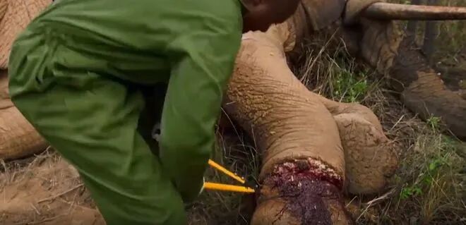 原来大象这种动物虽然体型庞大,当时他们不管在丛林还是在热带森林来回穿梭的途中,肯定要面临一些特别棘手的陷阱。所以这头大象是因为中了猎人的陷阱才导致脚部发生了严重的创伤,而他们这群人正是野外救援队。