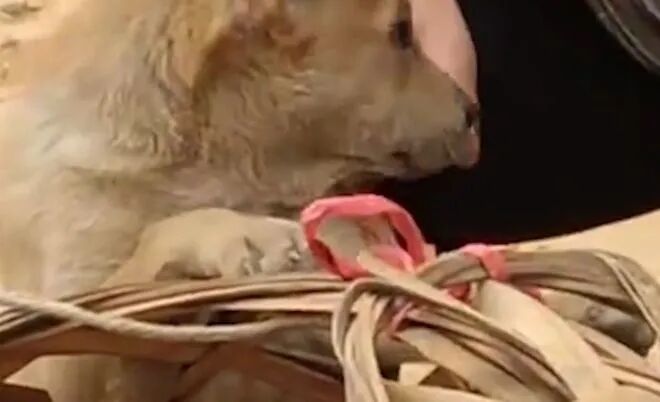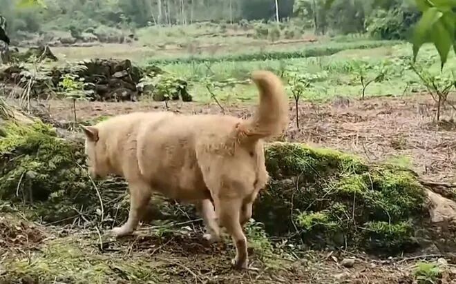 那天,住在村子的杨大爷像往常一样上山砍柴,在经过一处草丛的时候,大爷听到了一些动静,人老心不老的大爷好奇地凑了过去,扒拉开草堆之后,一只脏兮兮的“小狗”出现在他的面前。