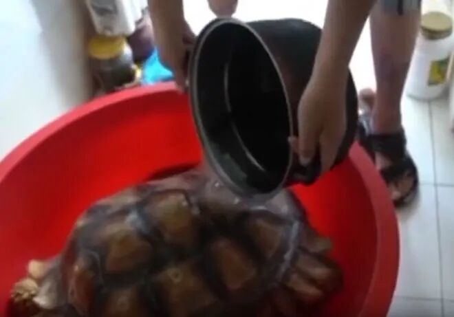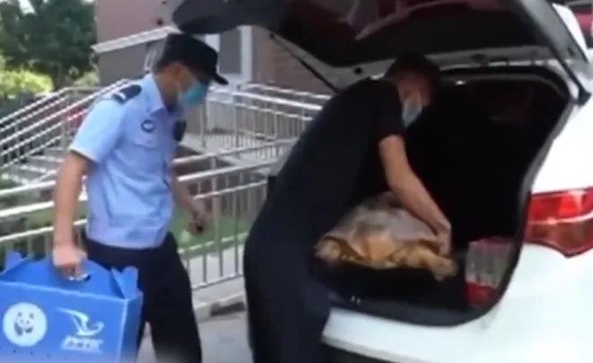 他们在询问了孙先生是如何得到这只龟,以及平时的饲养情况后,就连同平时的饲养工具一起,带上了车,这只龟即将去往野生动物救助部门。