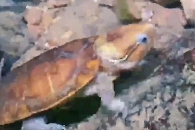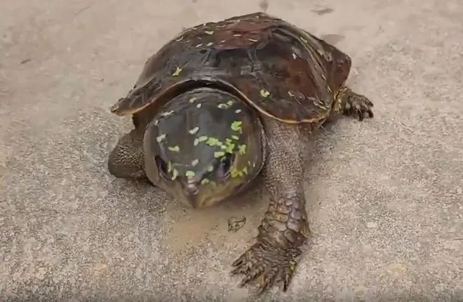 这时,细心的朋友突然发现这只乌龟的脚似乎有些不太对劲,正常的乌龟脚上,应该不会有那么多的鳞片,他顿时感觉到,这只乌龟身份的不一般。