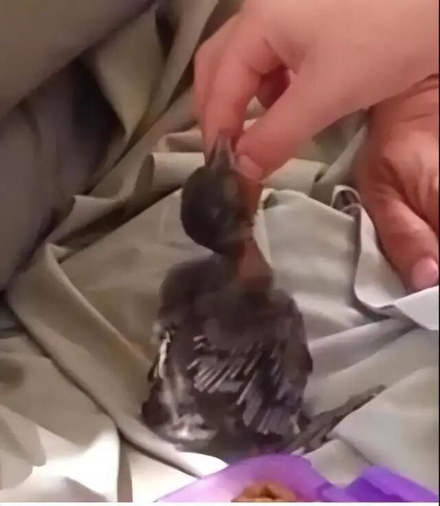 这只小鸟已经奄奄一息,娇小的身体无力地瘫软在地上,就在大家讨论它是一只什么鸟时,一个女人弯下了腰,轻轻的将它捧在了手心里。