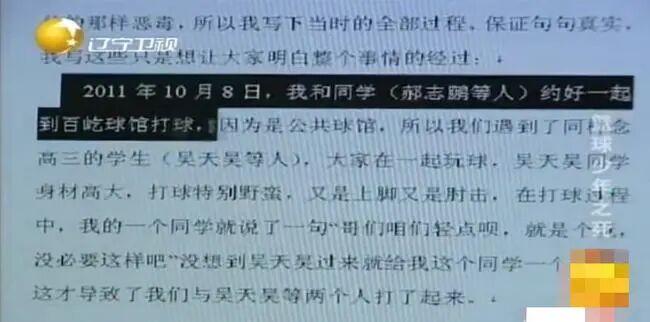 据他所说,当天他和郝志鹏等人一起到球馆里面打球,正好碰到了当时也在念高三的吴天昊等人。