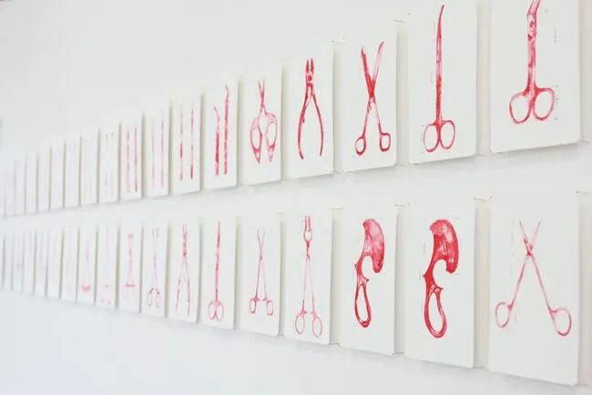 当她将手术刀和节育环放在一起时