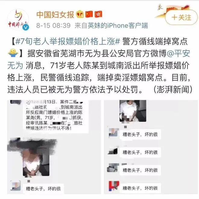 还有不久前,“7旬老人举报嫖娼价格上涨”引起一阵喧嚣。听起来很荒唐,令人发笑。