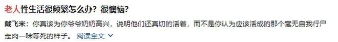 对于胡大爷这类老人,如此直白表露自己的性欲,不少年轻网友看不下去,骂得很难听:“真是越老脸皮越厚。”“一群不要脸的色老头!正经事不干,满脑子男盗女娼。”