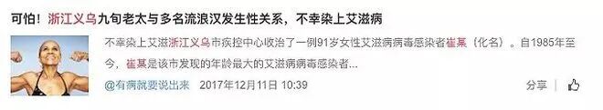 2015年,浙江义乌,一名91岁的老太太崔某,被确诊患上了艾滋病。而更令很多人大跌眼镜的是,她染上艾滋病的途径,竟然是性行为。