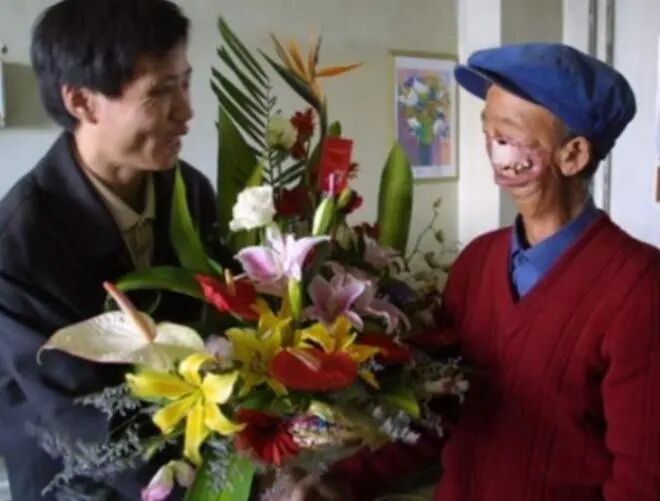 毁容让他失去了童年,他过早地听话、懂事、勤快,每天默默地跟在母亲或姐姐身后,学着干一些力所能及的活计。