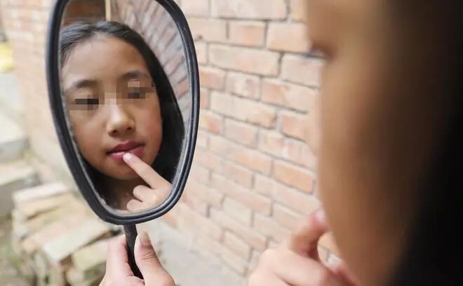 除此之外,也有一些多嘴的村民经常看着孩子,当面直接询问小佳的嘴唇是染了什么东西,这无疑是在小佳的伤口上撒盐,每当小佳听到他们的调侃,只能背过身来沉默的抚摸着自己的嘴唇,盯着镜子里的自己暗自伤神。