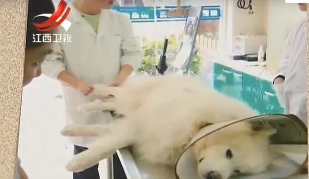 然而在钱先生被送进抢救室的时候,他的爱犬萨摩耶也被送到了宠物医院抢救。