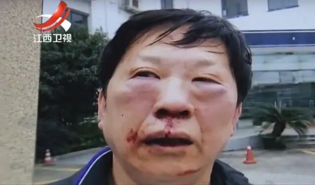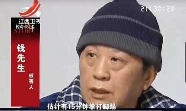 此时的钱先生面目全非,鼻子嘴巴都有血迹。