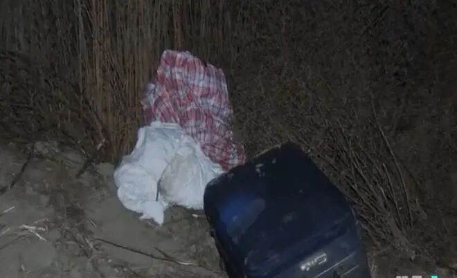 这个时候,其中一名工人,寻着臭味传来的地方,看见了一个行李箱还有一个塑料编织袋。