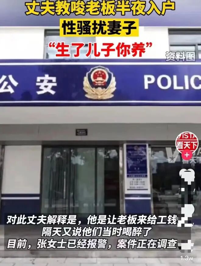 事后丈夫解释称张某是来给工钱的,隔天又说喝醉了。当张女士找到张某对质,张某先是否认认识她,然后又说二人关系很好,最后开车溜走了。目前,警方已介入调查。