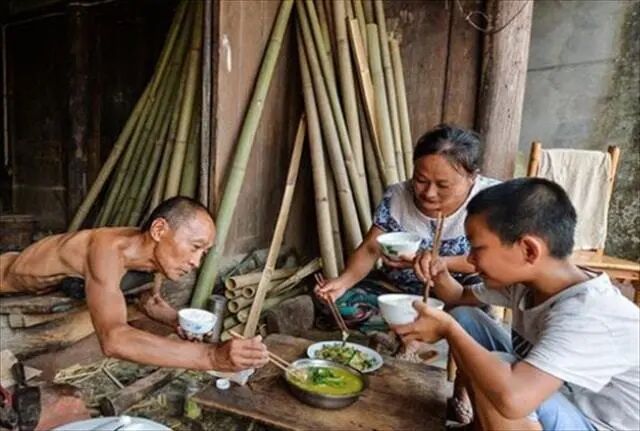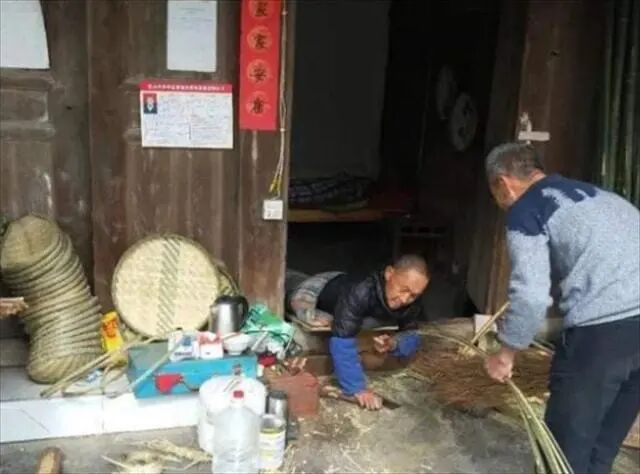 刚进到院里,眼前所见的情形至今让他记忆犹新——一个骨瘦如柴的男人趴在门槛上,穿着一件满是破洞的背心,正埋头专心编着簸箕。