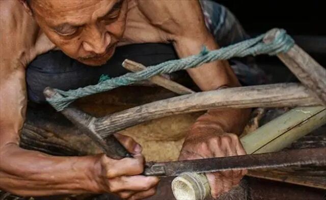 起初因为不熟练,他经常被锋利的竹条扎得满手血口,可他从未气馁,只顾拼命埋头研究。