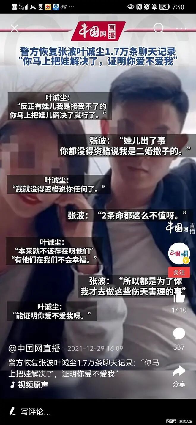随着调查的不断深入,公安机关通过技术手段,对张波以及其女友叶诚尘的1.7万条“杀子”微信全部复原,杀子过程终于大白天下。
