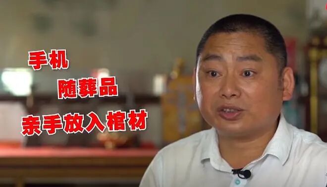 除此之外,家人还在棺材中放了岳父生前爱穿的衣服,垫被和一些日用品,以及岳父生前一直用的手机。