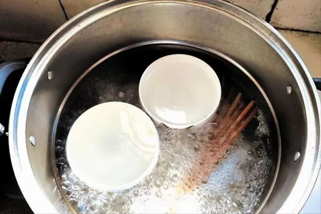 吃饭的时候,碗筷都要用开水煮一遍才使用,而且每顿饭吃饭前都要如此消毒。