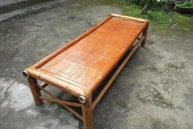 两人睡觉的床是竹制的,每天早上他们都要把竹床挂在墙上。