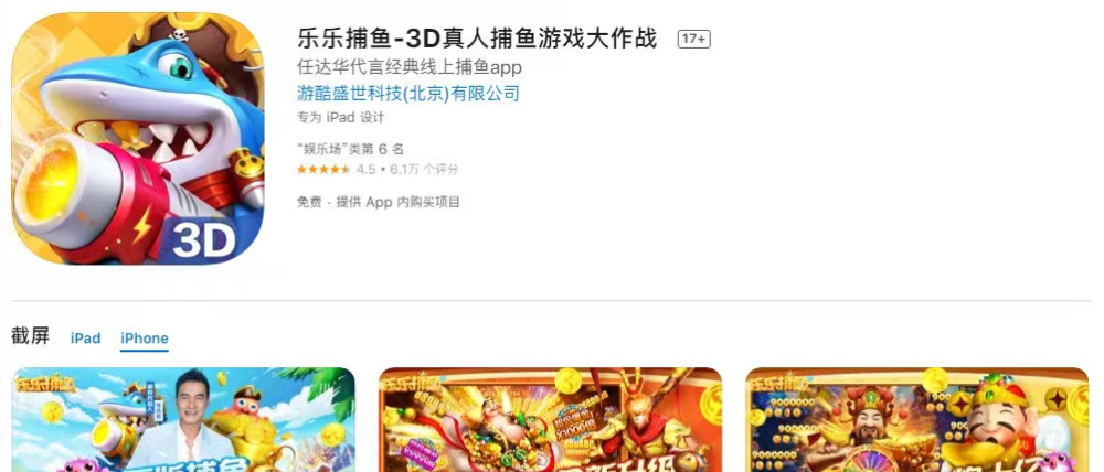 乐乐捕鱼是一款由游酷盛世科技(北京)有限公司发行的休闲手游,目前在苹果App Store商店“娱乐场”类排第6名,包括大量内购项目,官方分级是17+。