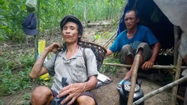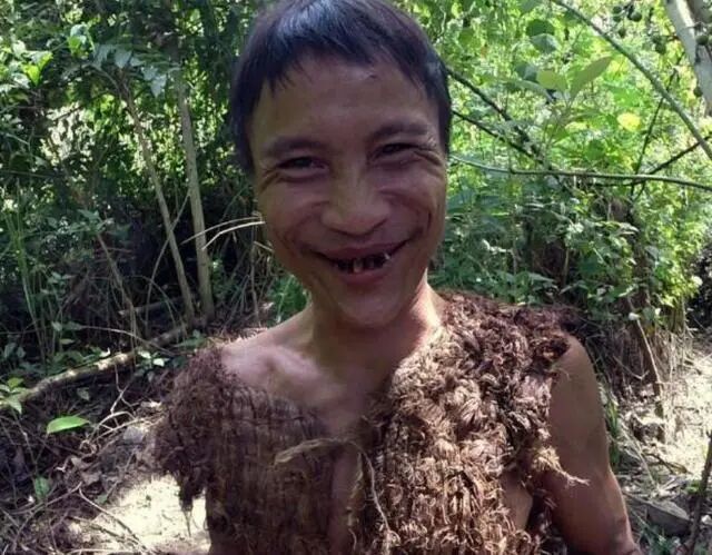 不仅如此,甚至在小树屋中还有着两位男性,他们穿着用树皮编制的衣服,看起来和原始人类一模一样。