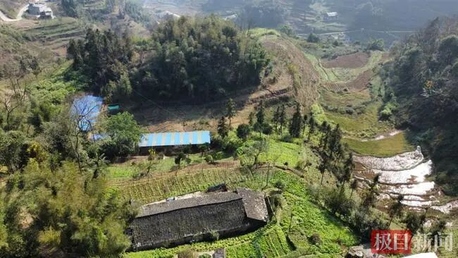 在李景伟幼时生活过的地方,极目新闻记者看到,如他手绘的地图一样,梯田、水塘、竹林这些场景没有太大变化,但他家原来的老屋已不复存在,只留下一块覆盖着塑料膜的屋基,显得一片颓败。有村民称,李景伟家的房屋原先是瓦房,后来年久失修倒塌了,成了现在这个样子。
