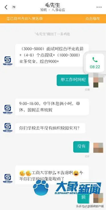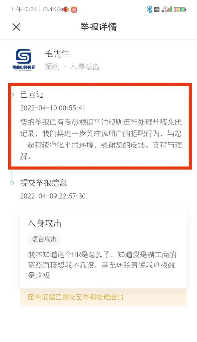 黄先生称,他是湖南工商大学一名大四学生,由于临近毕业,他从3月份开始一直在网络平台上找工作。3月26日,他通过私信的方式,联系上“领航中视国际”公司的HR毛某。让黄先生意想不到的是,毛某对他的态度却十分恶劣。