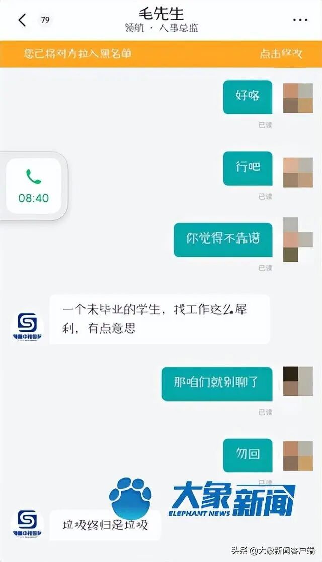 大学生求职被骂"垃圾终归是垃圾" 当事人发声:对方先骂人我才回怼的