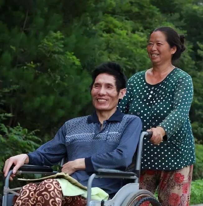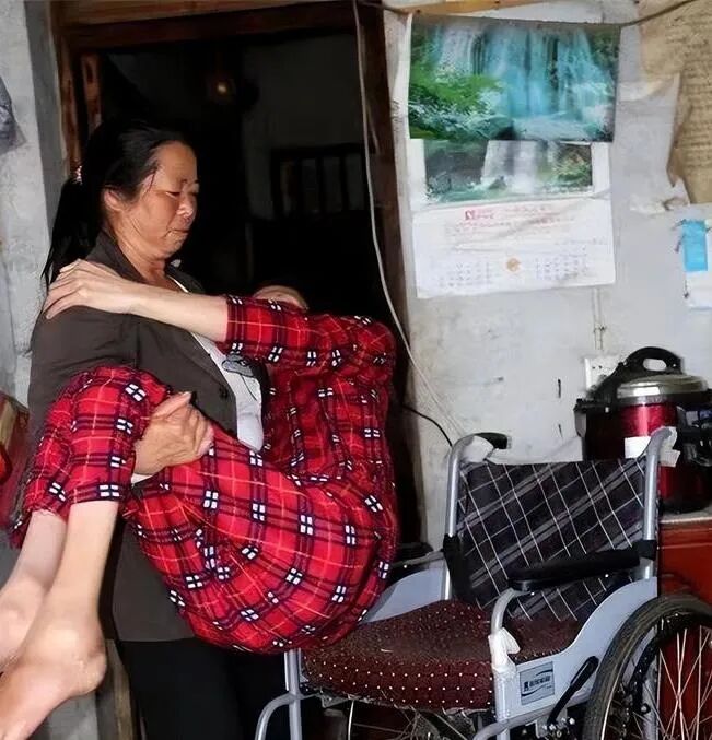 彭艮凤每天把小叔子抱上抱下,让他坐在轮椅上,推他出去晒太阳,呼吸新鲜空气。