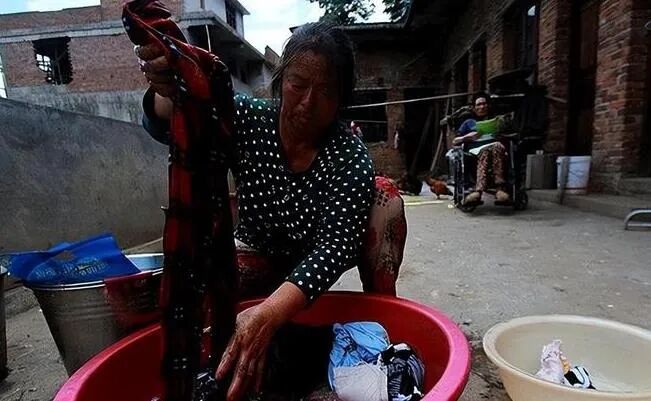 小叔子虽然下半身瘫痪,但是手还是很利落,他可以自己拿着毛巾擦脸,洗完脸之后彭艮凤再帮他把毛巾洗了,换好衣服,然后推着他起来吃早饭。