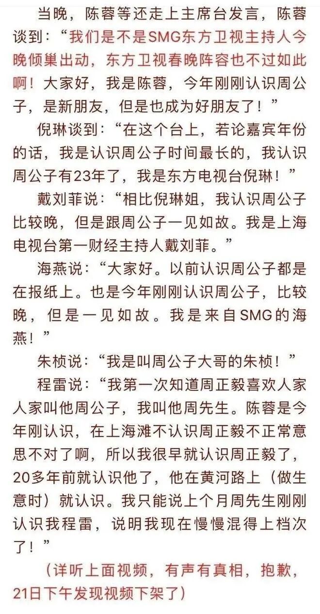 这时候周正毅的牌面越来越大,几天前,东方卫视主持人齐声称呼的“周公子”三字,也就是这时候开始出现的对周正毅的称呼。