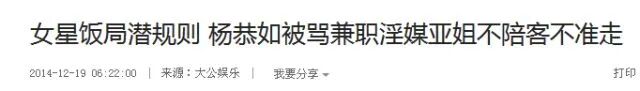 因为,杨恭如之前就被传说是“饭局女星”。早在她参选亚姐时,就被传曾在“中国城”当舞小姐,其后更有报道指她曾在“金苹果”夜总会上班,艺名为Mandy,杨曾痛哭否认。1996年4月,杨恭如又因带领一班姐妹去春茗饭局,被骂是兼职淫媒。