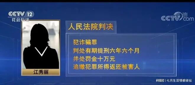 最终,江秀丽被判处有期徒刑六年六个月,并处罚金十万元,追缴犯罪所得返还被害人。
