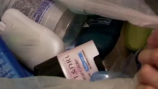 Kate在节目中展示了自己家里一个巨大的纸箱,纸箱里面装满了她在各处领取来的免费用品:牙刷,牙膏,牙线,剃刀,除臭剂,隐形眼镜护理液......