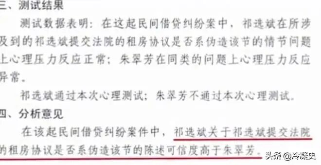一个朋友建议,让她和祁选斌一起用测谎仪测谎,在精密仪器面前说谎者自然就会现身,随后朱翠芳提出上诉,申请双方进行测谎,这次朱翠芳信心满满,她认为真相很快将会浮出水面。