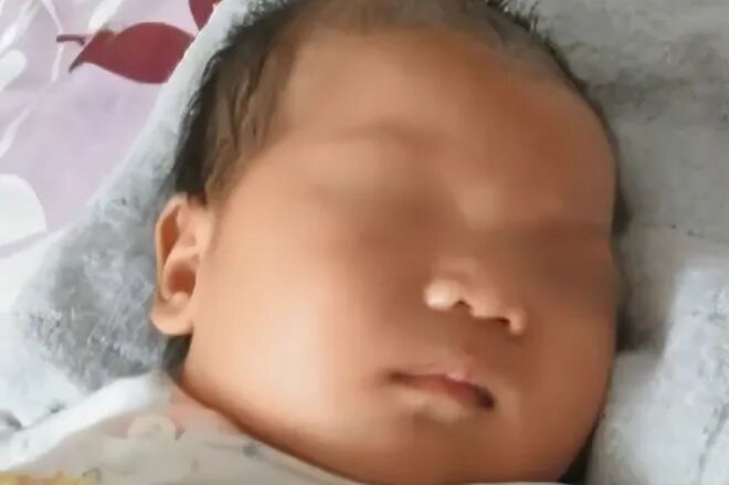 女人怀中抱着一个婴儿,婴儿正在睡觉,看上去胖嘟嘟的很可爱。