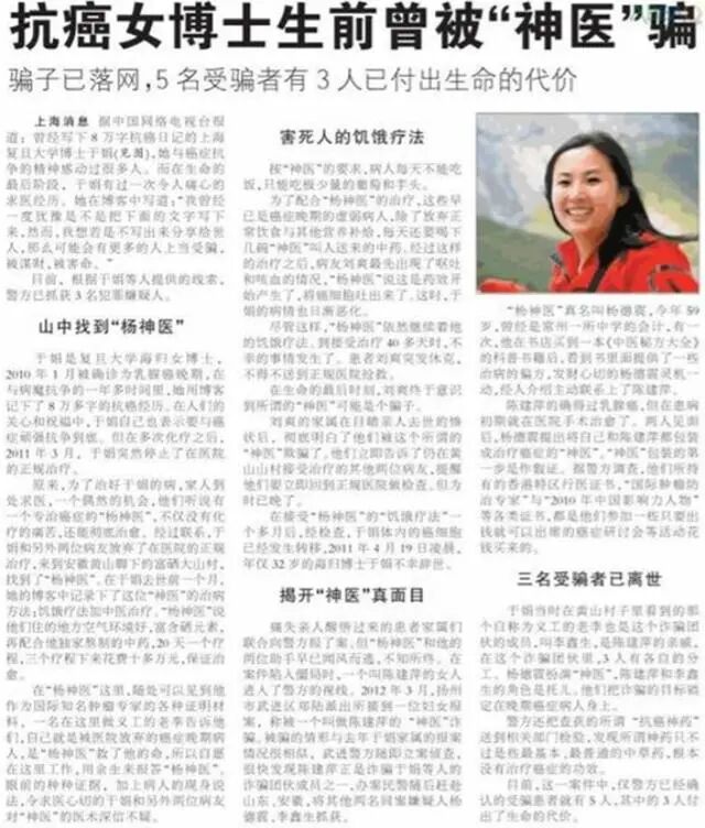 2011年,于娟的家人听闻安徽有一名“神医”,据说可以彻底治愈癌症。