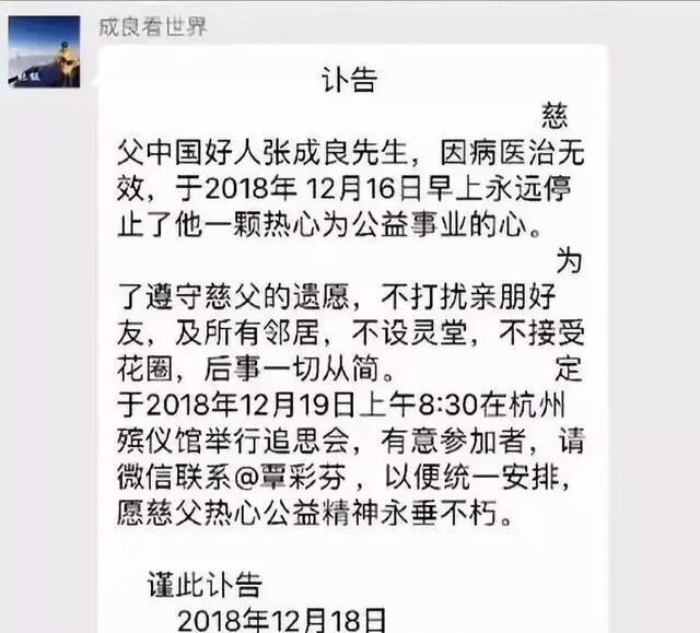 2018年12月18日,一则讣告在杭州一家面馆的义工群里激起了千层浪。