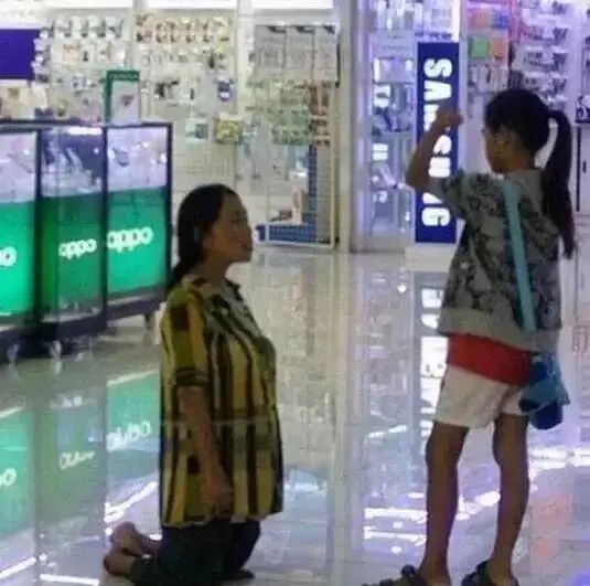女孩逼迫母亲下跪!